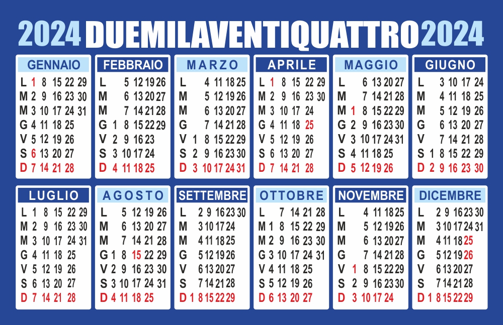 calendario 2024 stampabile con festività Calendario 2024 italiano con le festività in vigore in Italia: TEXT_3. TEXT_4.
