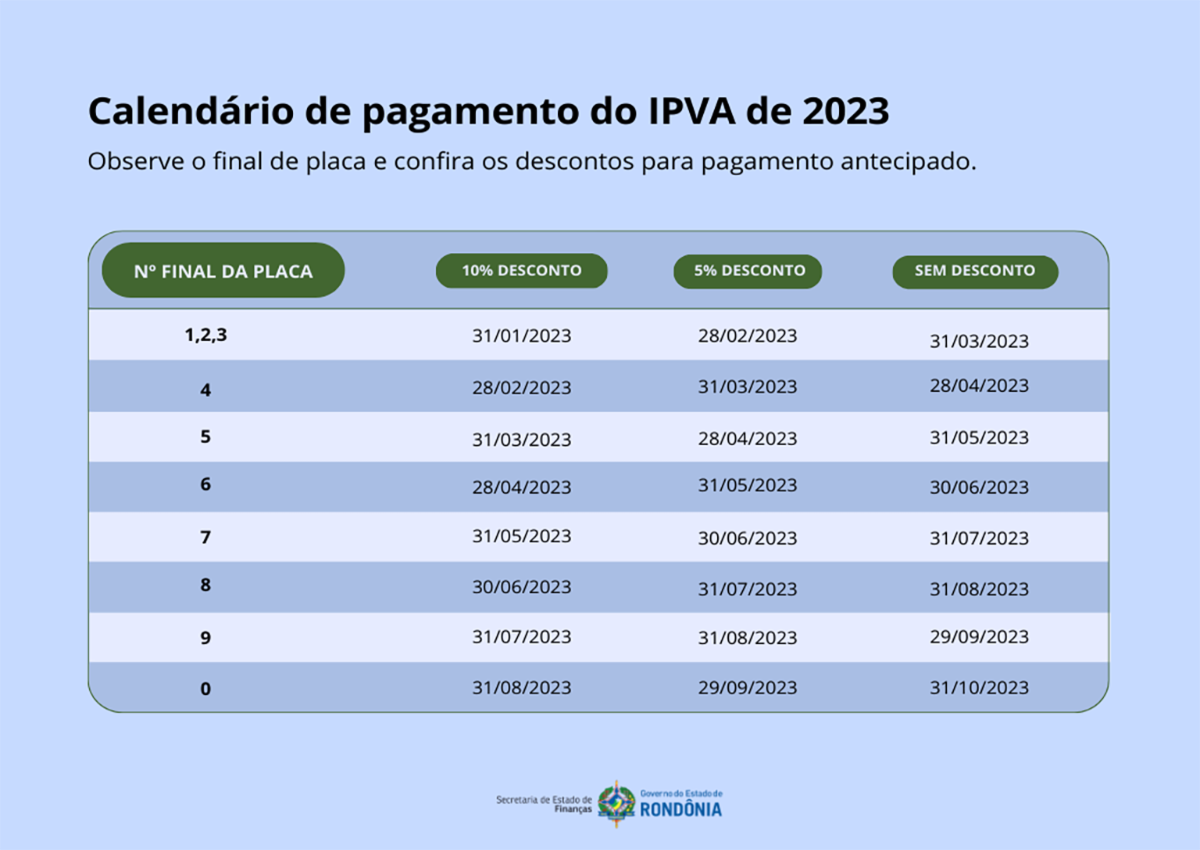 IPVA: Fazenda divulga calendário prazos de vencimento para