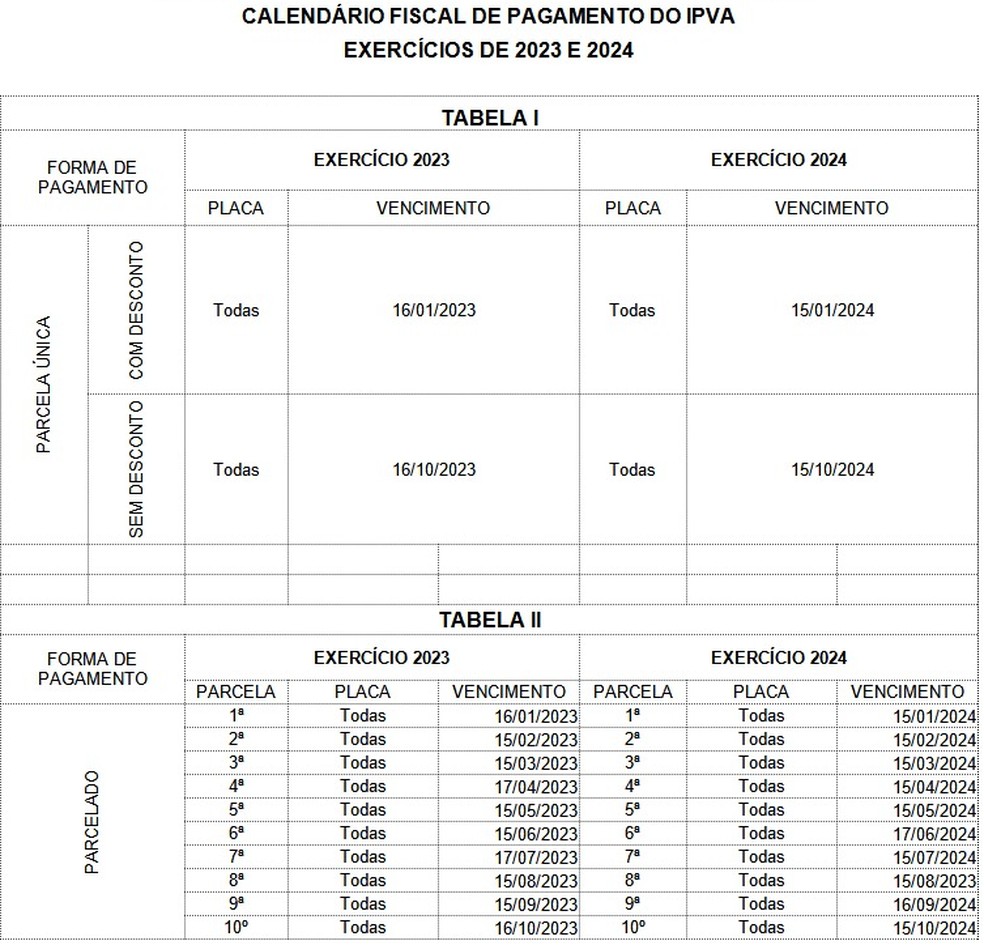 IPVA: Fazenda divulga calendário prazos de vencimento para