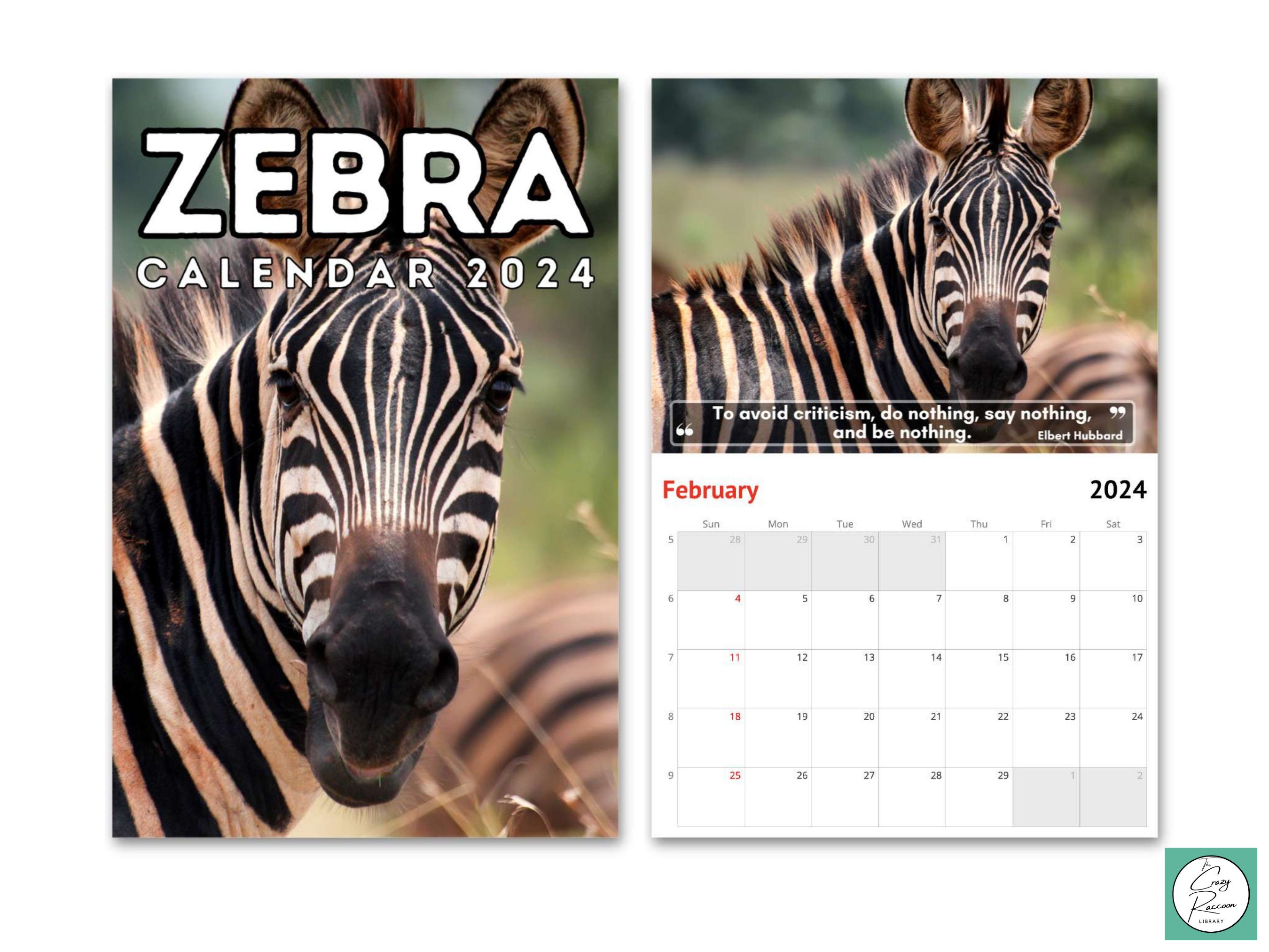 Calendario de pared de cebras 2024 linda idea de regalo para