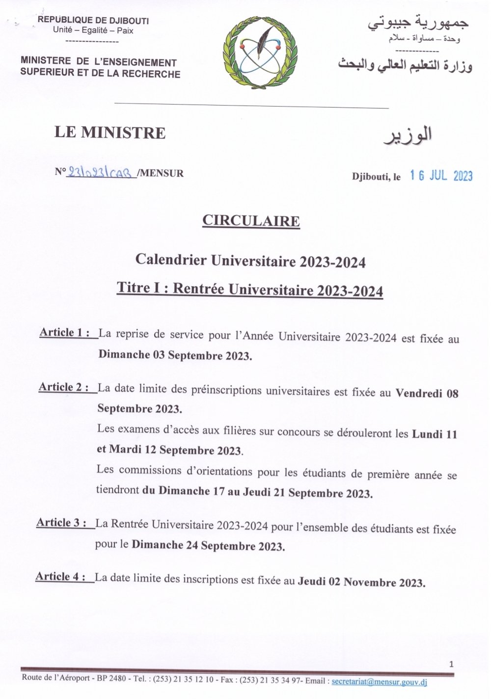 Université Djibouti on X: “[Circulaire] CALENDRIER UNIVERSITAIRE
