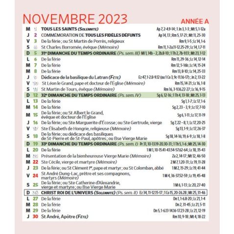 Calendrier liturgique 2023 Année A | Éditions Médiaspaul